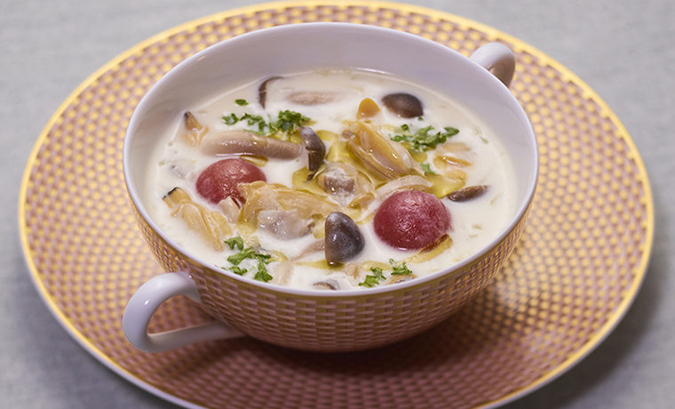 「シェ・ イノ」古賀純二 あさりの旨味がつまったごちそうスープ 口伝 クラムチャウダー 「クラムチャウダー」といいますとアメリカやカナダのイメージが強いのですが、ベシャメルソースを使って美味しいスープに仕上げたいと思いま … 続きを読む クラムチャウダー