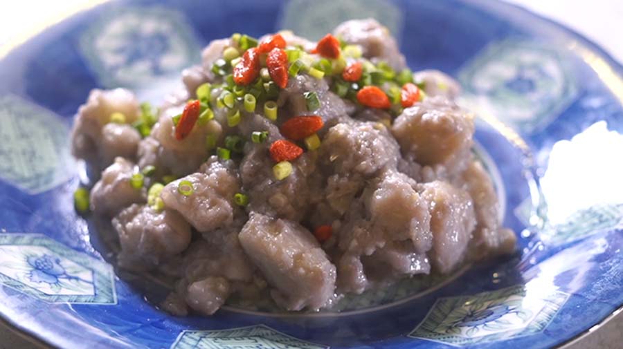 里芋のお料理「飯田徹也料理長/里芋のねぎ油煮込み」と「藪崎友宏料理長/レンコンとゆり根の里芋くずし煮込み」をご紹介します。