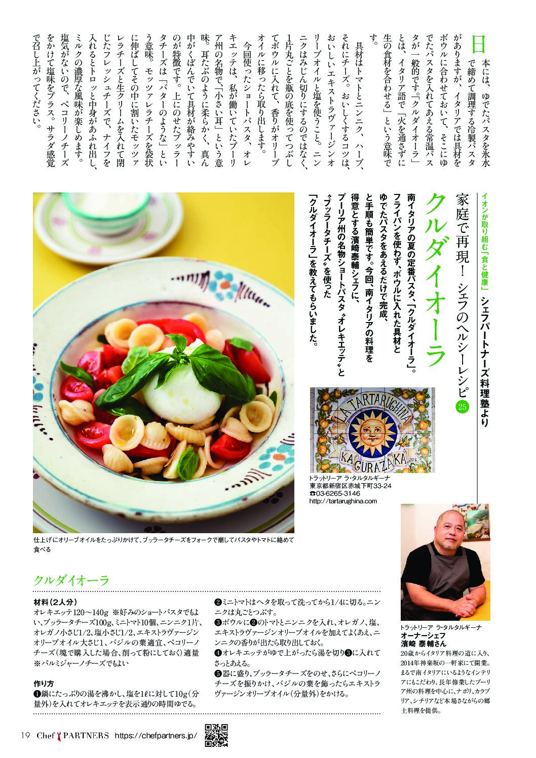 「シェフパートナーズ」メンバー、神楽坂の「ラ・タルタルギーナ」濱崎泰輔シェフ「クルダイオーラ」のレシピと紹介記事がAEON(イオン)グループの情報誌『AEON MAGAZINE_Vol.89/2025年5月28日発刊』に掲載されました。